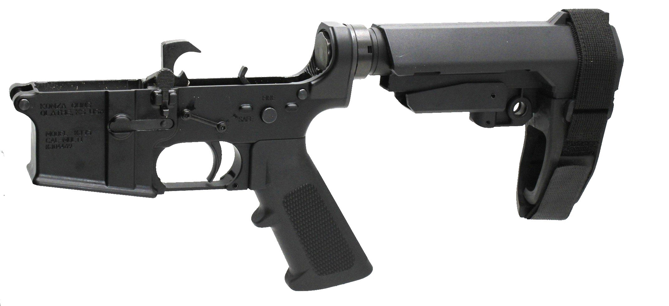 Konza AR15 Aluminum 7075 T6 Complete Lower Receiver SB3 Brace W Super Safety